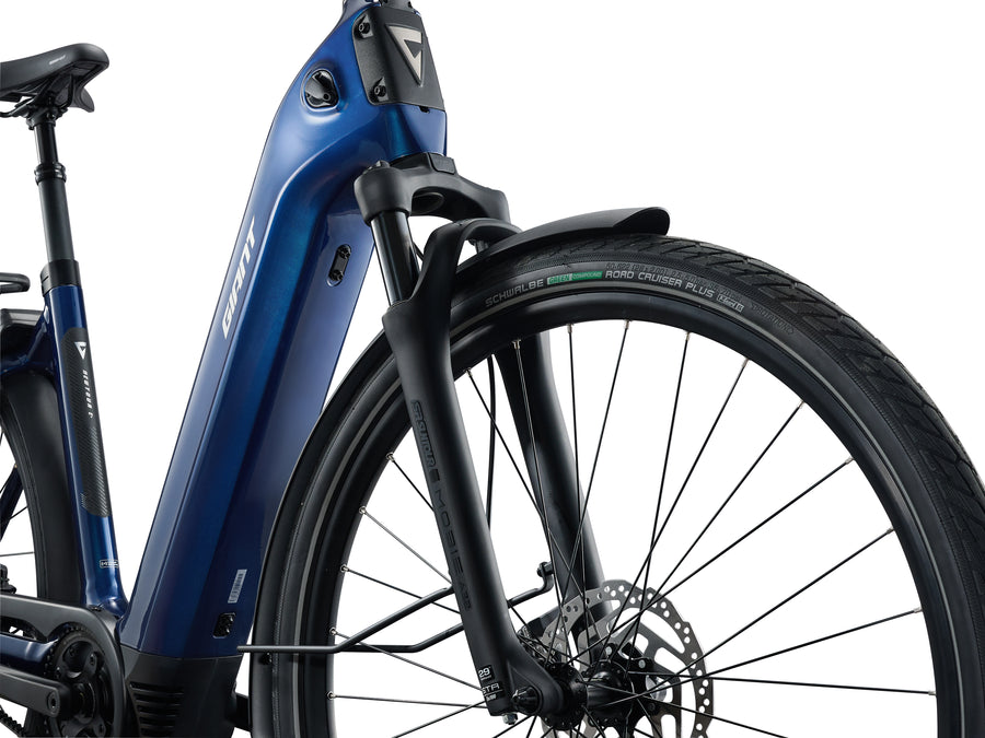 Ease and stability define the ride experience. Upright geometry combined with a comfort-focused setup creates a relaxed, confidence-inspiring feel, while suspension in both the fork and seatpost helps smooth rough pavement and shared paths. This balanced approach keeps the ride composed as conditions change, encouraging longer outings without constant adjustment.