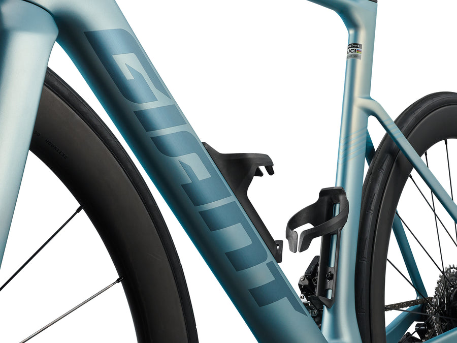Giant’s High Performance Grade raw carbon material is used to produce this custom frame material in our own composite factory with a high stiffness-to-weight ratio. The front triangle of these framesets is assembled and molded as one continuous piece in a proprietary manufacturing process called Modified Monocoque Construction.